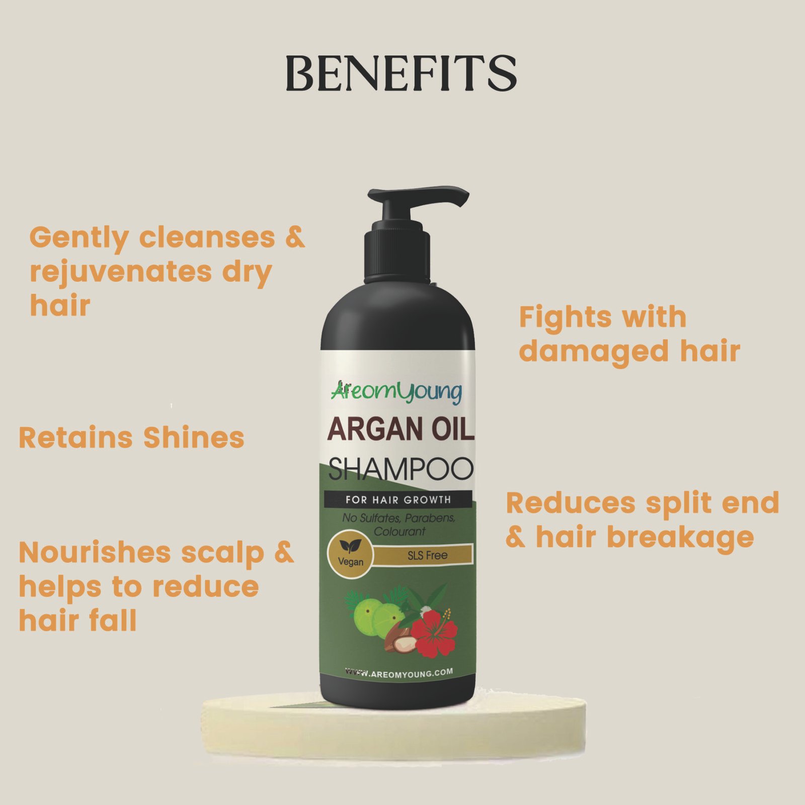 Inspired by the ancient Moroccan secret to luxurious hair, Areomyoung Argan Oil Shampoo is a rejuvenating elixir that transforms dull, weak strands into silky, voluminous locks.